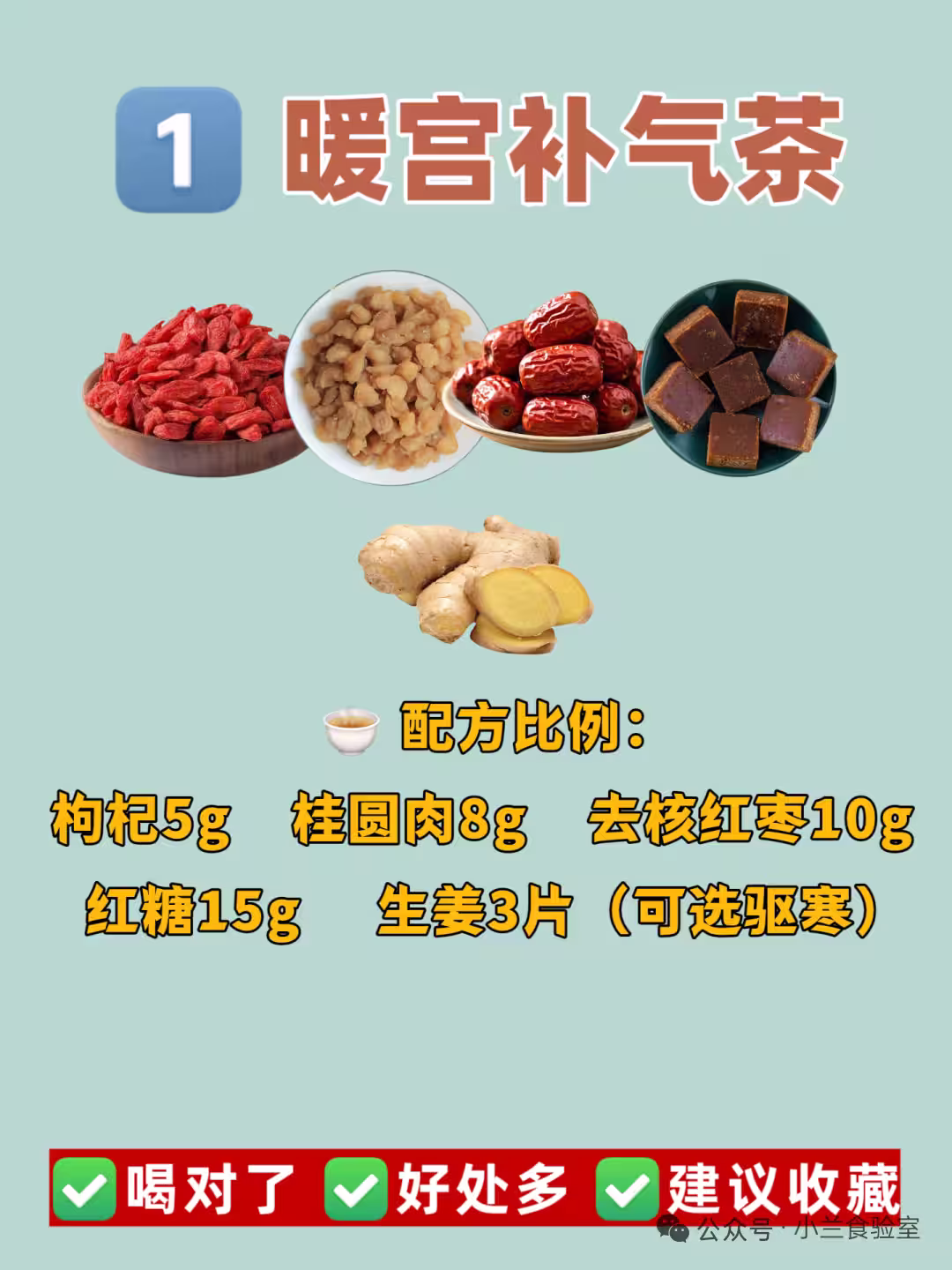 枸杞5g + 桂圓肉8g + 去核紅棗10g + 紅糖15g + 生薑3片(可選驅寒)