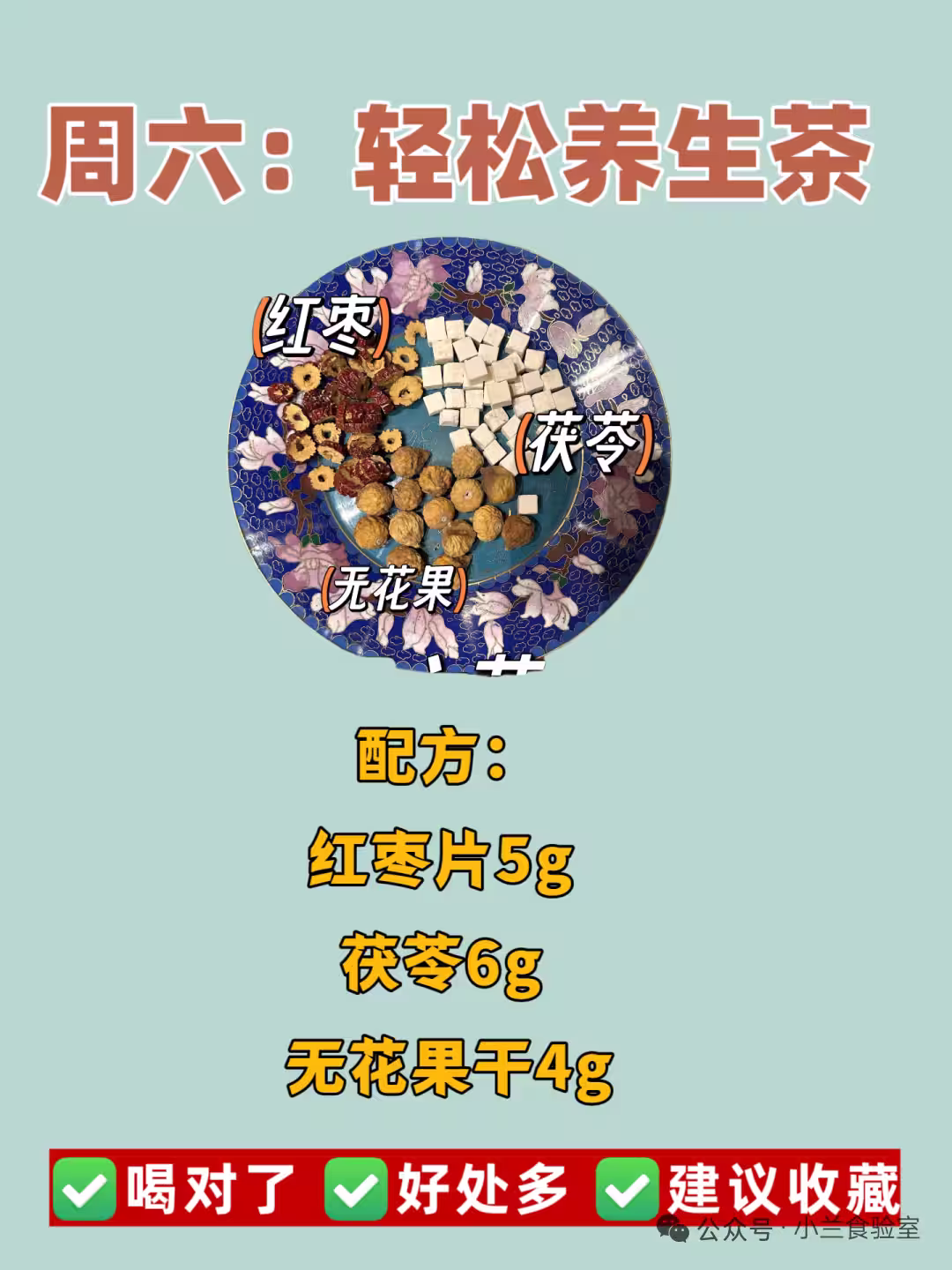 茯苓+無花果:健脾滲濕,促進周末飲食積滯代謝;