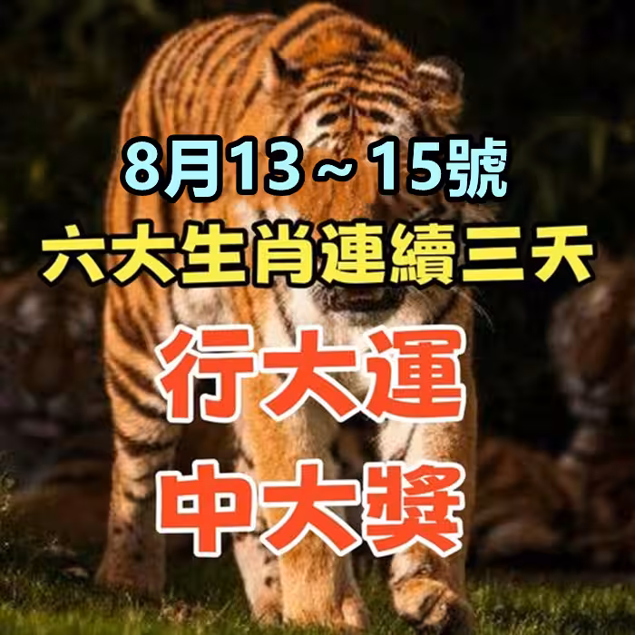 8月13~15號連續三天行大運,中大獎的六大生肖
