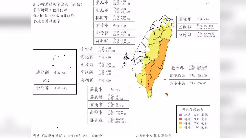 部分縣市則不分平地或山區,統一採用350毫米為標準。