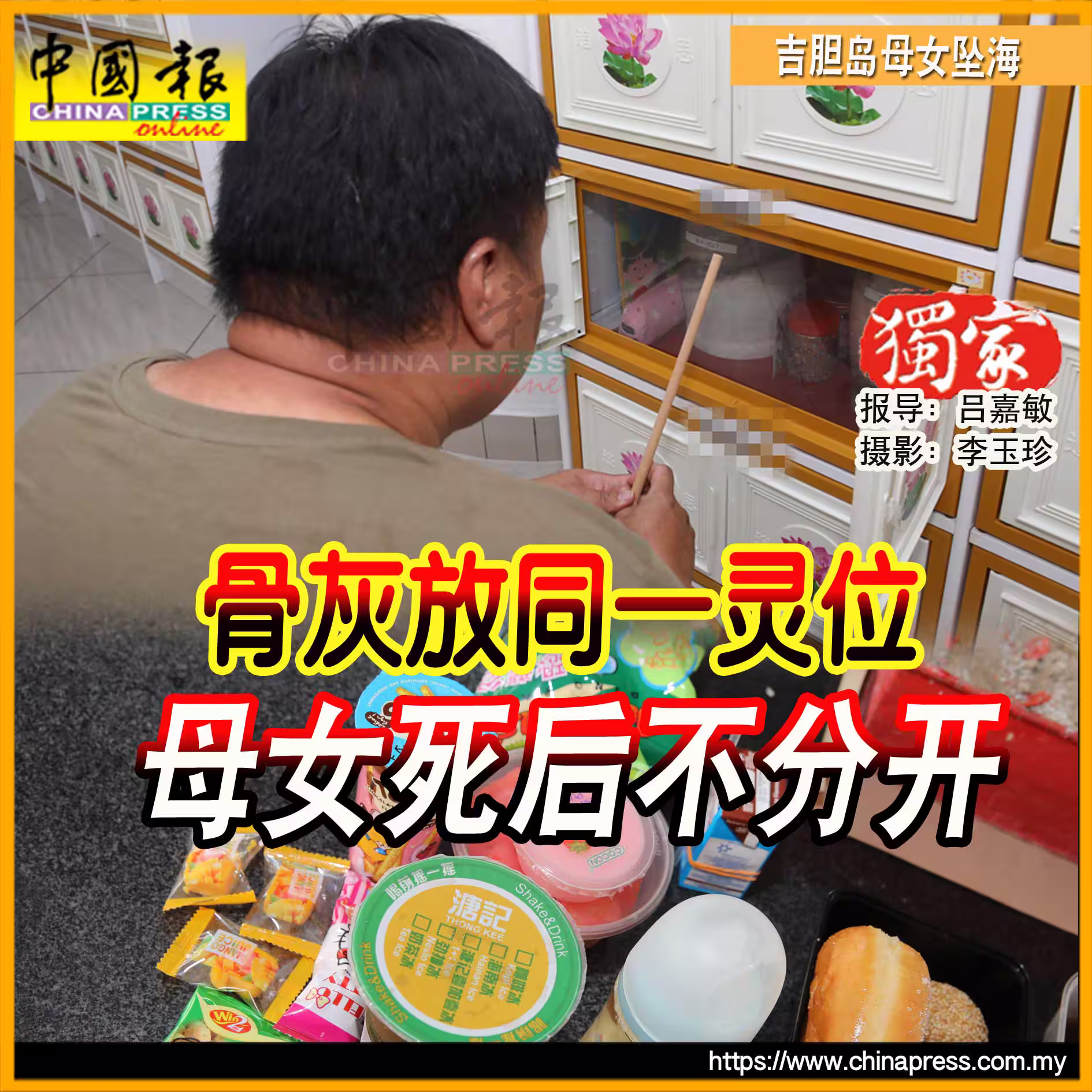 (吉隆坡11日訊/獨家報導、攝影)「吉膽島碼頭母女墜海亡」一案;死後不分離,母女兩人的骨灰罈安放在廣東義山廣義塔同一靈位!
