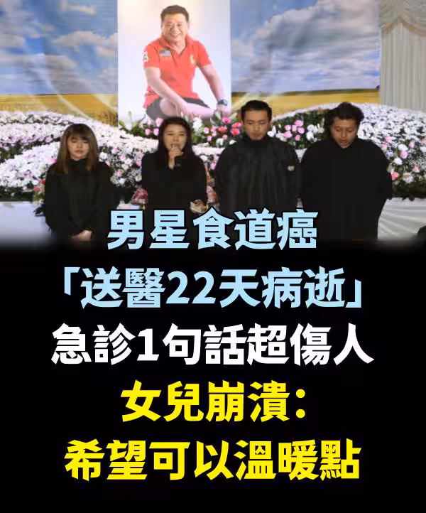 男星食道癌「送醫22天病逝」!急診1句話超傷人 女兒崩潰:希望可以溫暖點!