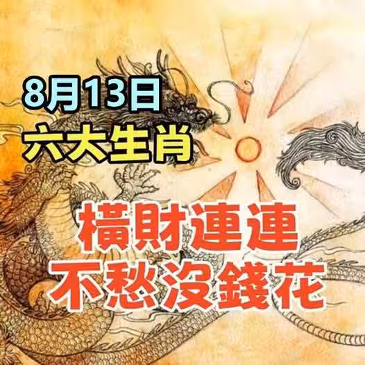 8月13日橫財連連,不愁沒錢花的六大生肖.