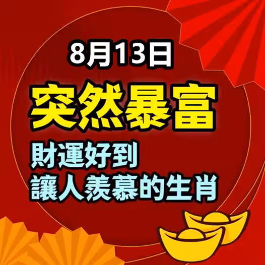 8月13日突然暴富,財運好到讓人羨慕的生肖~