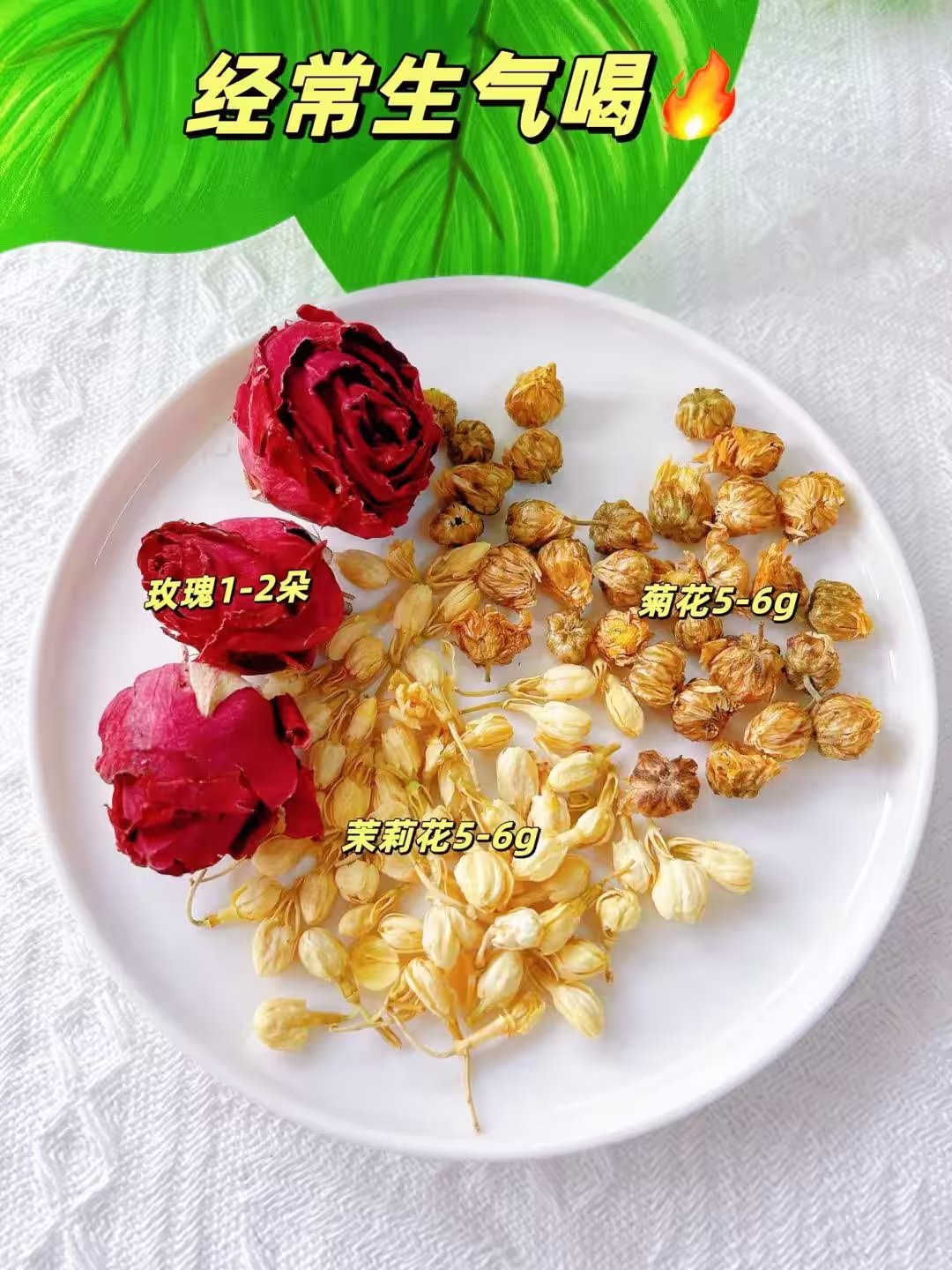 功效:玫瑰活血、茉莉解郁、菊花清火,一杯下肚,火氣全澆滅! 經期前必囤~