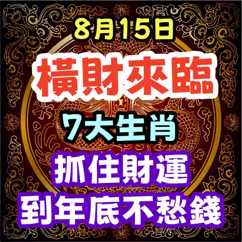 8月15日橫財來臨,7大生肖抓住財運,到年底不愁錢!