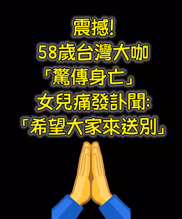 震撼!58歲台灣大咖「驚傳身亡」 女兒痛發訃聞:「希望大家來送別!」