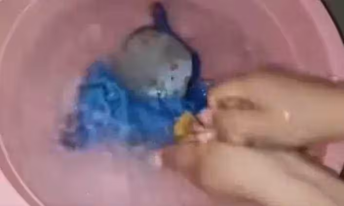 經過搓洗後,將毛巾擰乾,你會發現清洗過的水非常髒。
