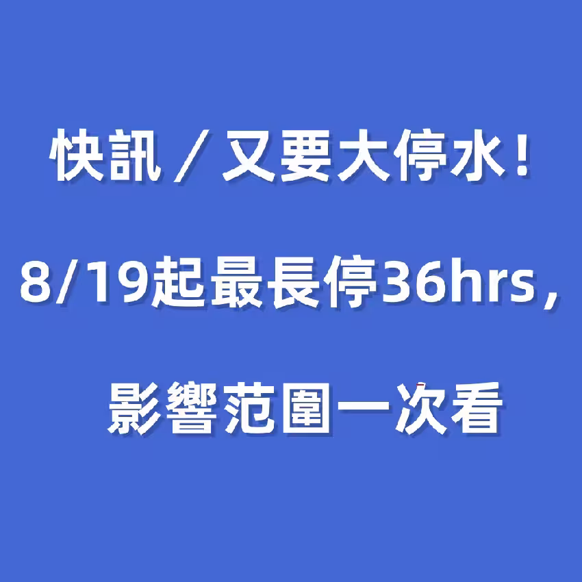 快訊/又要大停水!8/19起最長停36hrs,影響範圍一次看
