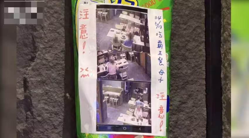 當晚,各方再次前往店家用餐並表達歉意時,竟發現自己和孩子的照片被貼在櫃檯上,還被標記為「霸王餐母子」。