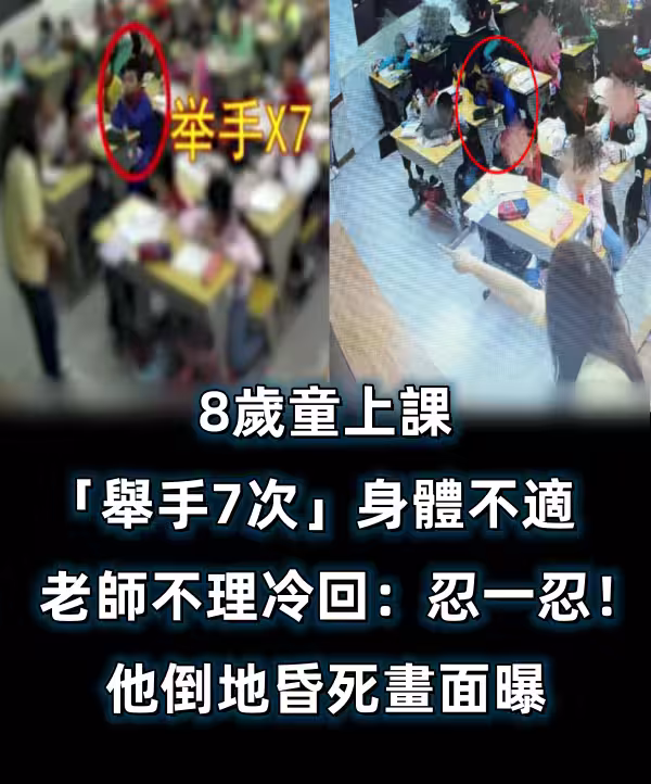 8歲童上課「舉手7次」身體不適 老師不理冷回:忍一忍!!他倒地昏死畫面曝