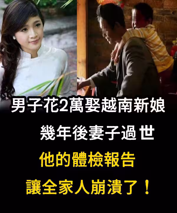 男子花了2萬娶越南新娘,幾年後妻子過世,他的體檢報告讓全家人崩潰了!