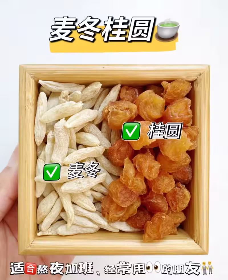 麥冬養陰生津,桂圓養心安神,適合秋冬乾燥天氣引起的眼乾、咽干、乾咳。
