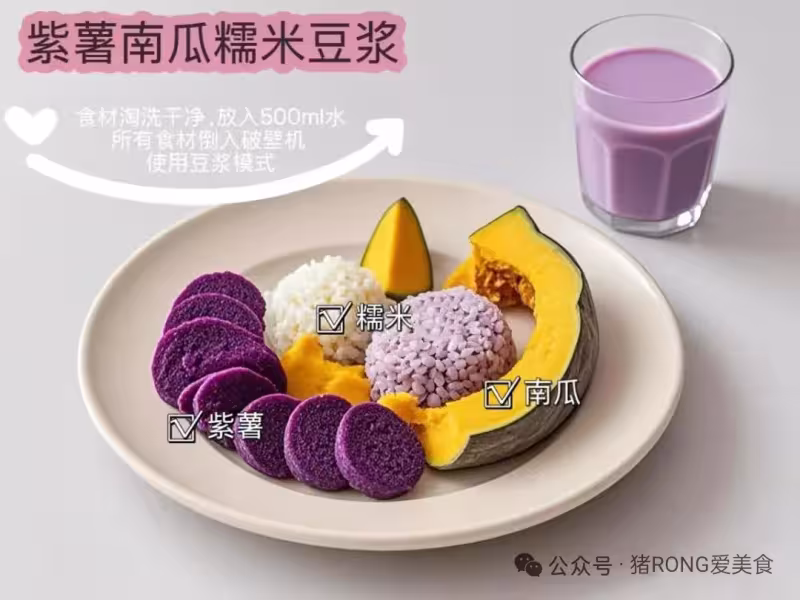 紫薯南瓜糯米豆漿 糯米8g+紫薯+南瓜150g