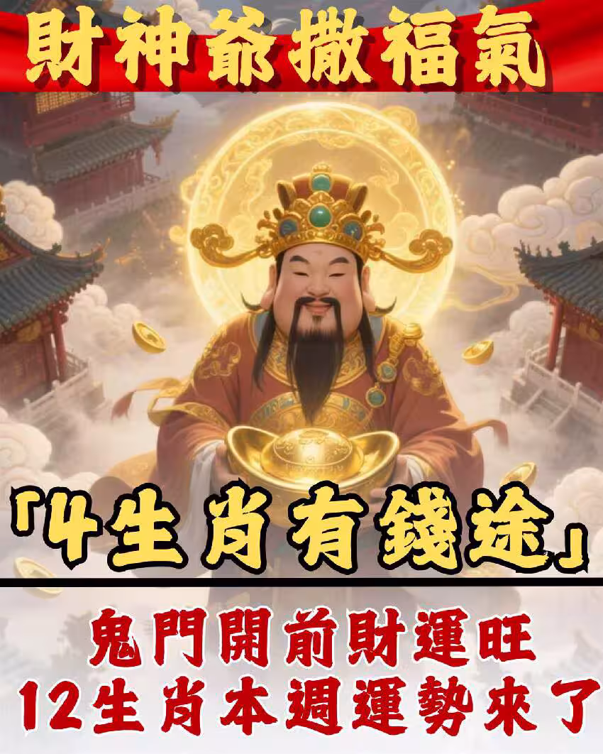 財神爺撒福氣!鬼門開前財運旺「4生肖有錢途」本周運勢來了