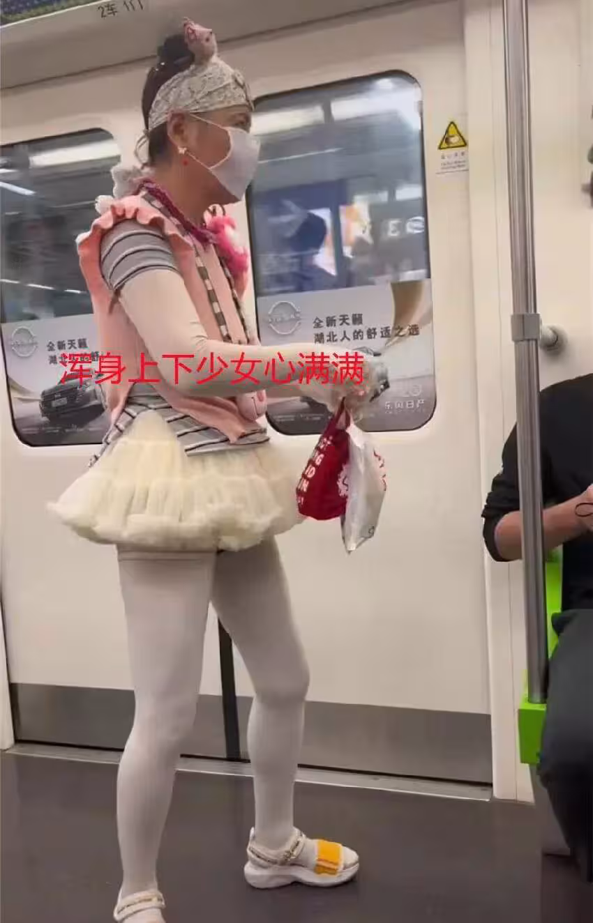 捷運上巧遇一位「金色弔帶裙大叔」超搶眼!捷運變秀場,不料仔細看去「眾人笑不出來了」