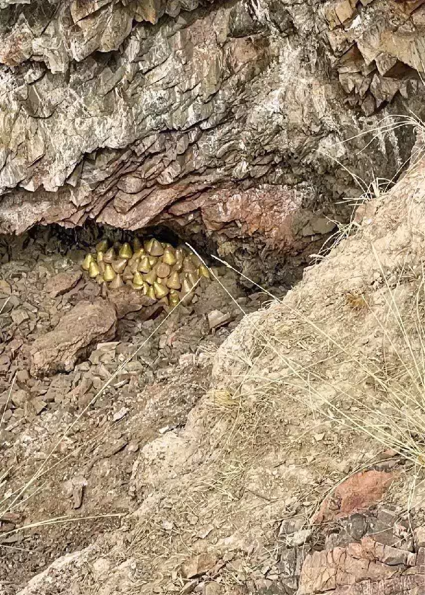 目擊者描述,這些不明物體散落在山間步道旁,遠看像撒落一地的金豆子,在陽光下折射出耀眼反光。