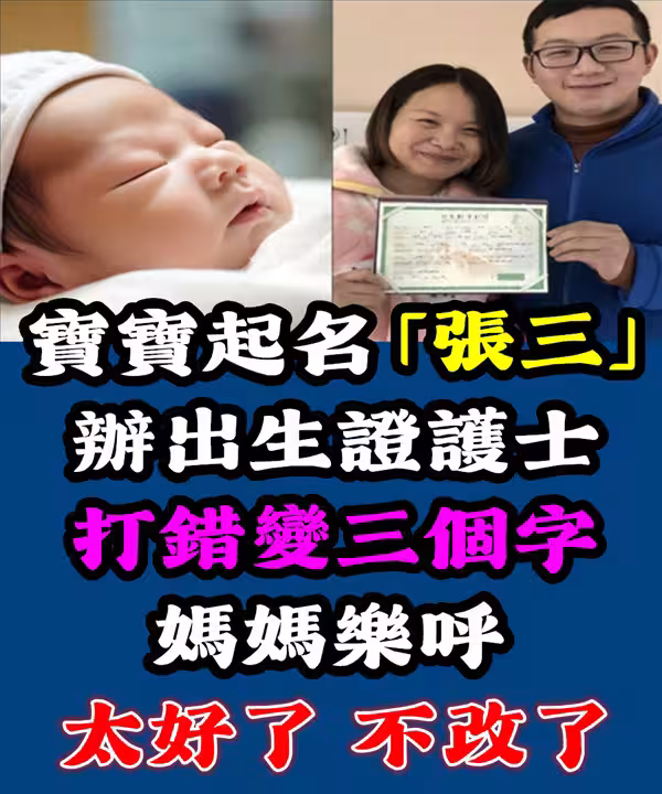 寶寶起名「張三」辦出生證護士打錯變 「三個字」 媽媽樂呼:太好了,不改了