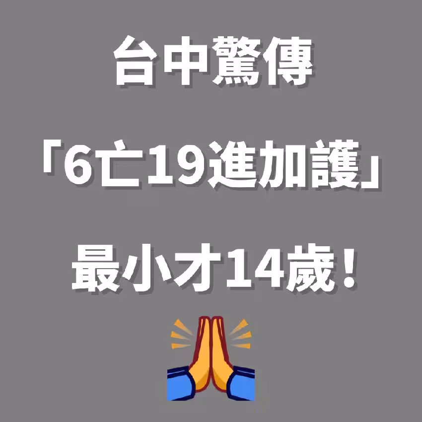 台中驚傳「6亡19進加護」最小才14歲!