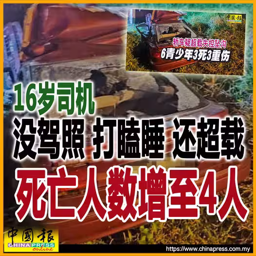 16歲司機 沒駕照 打瞌睡 還超載 死亡人數增至4人