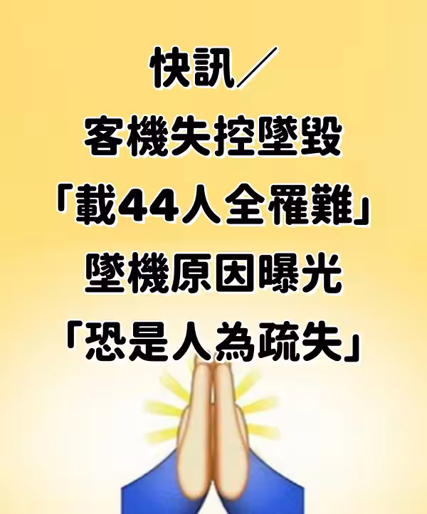 快訊/客機失控墜毀「載44人全罹難」!墜機原因曝光「恐是人為疏失」