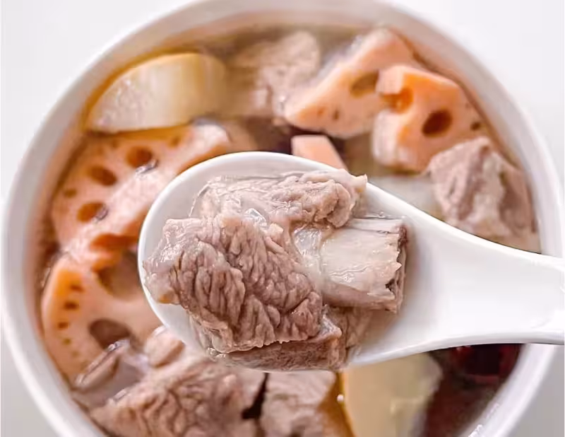 食材: 蓮藕、鐵棍山藥、梨、蓮子、百合、銀耳 瘦肉/骨頭 做法: ①將肉切塊冷水下鍋加入蔥姜,料酒焯水洗凈備用 ②所有食材一起放鍋里煲1小時(也可添加幾顆紅棗) ③加入適量鹽調味即可