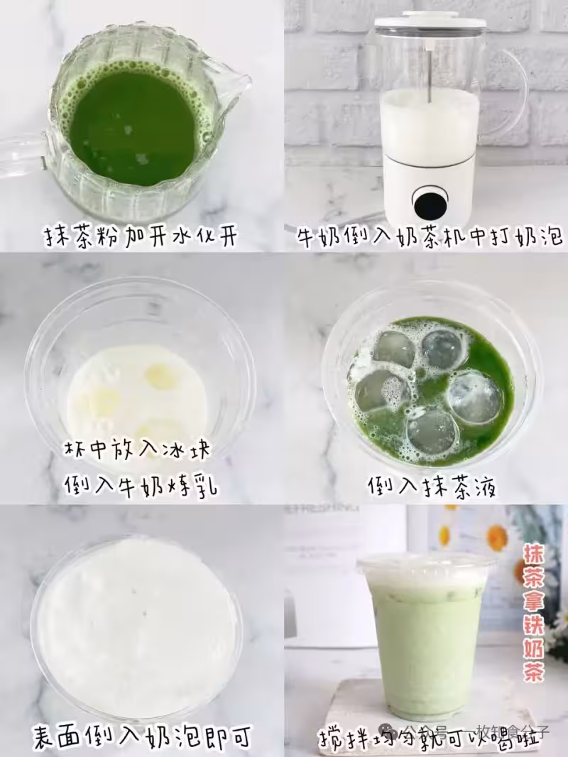 食材:抹茶粉5g|開水30g|全脂牛奶200ml|冰塊適量