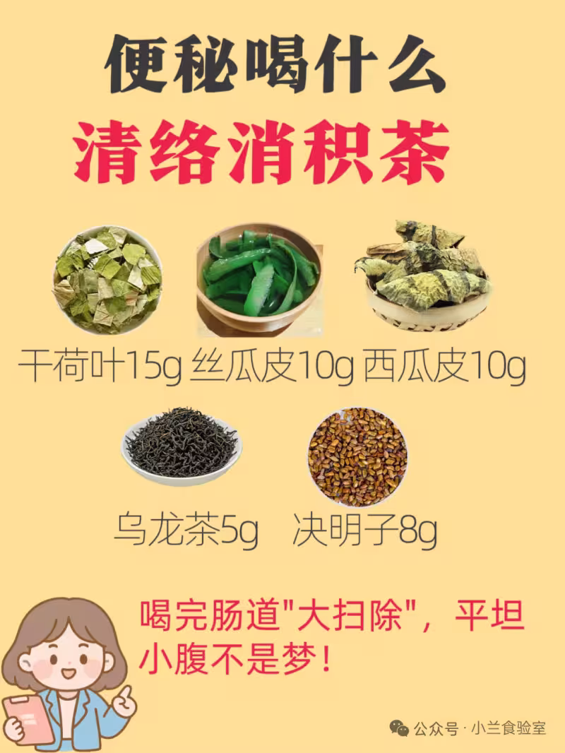 功效:絲瓜皮+西瓜皮高纖維促蠕動,決明子潤腸通便。喝完腸道"大掃除",平坦小腹不是夢!