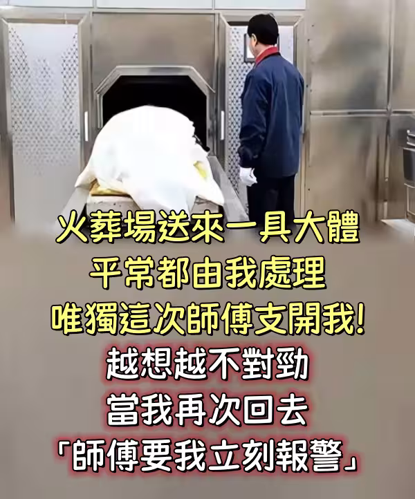 火葬場送來一具大體,平常都由我處理,唯獨這次師傅支開我!!越想越不對勁,當我再次回去「師傅要我立刻報警」!