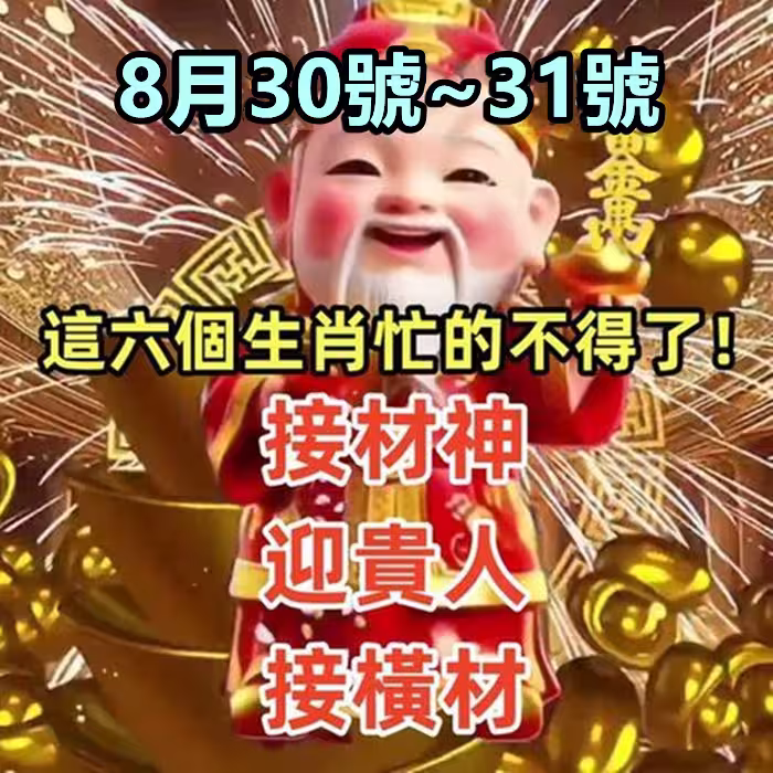 8月30號~31號:這六個生肖忙的不得了!接材神,迎貴人,接橫材!