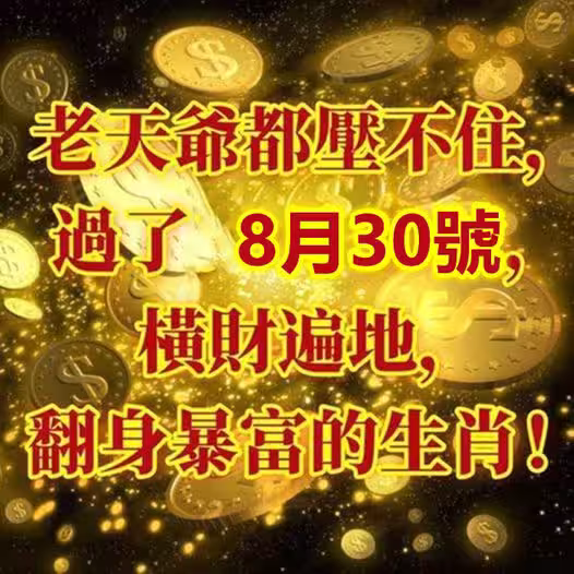 老天爺都壓不住,過了8月30號橫財遍地,翻身暴富的生肖