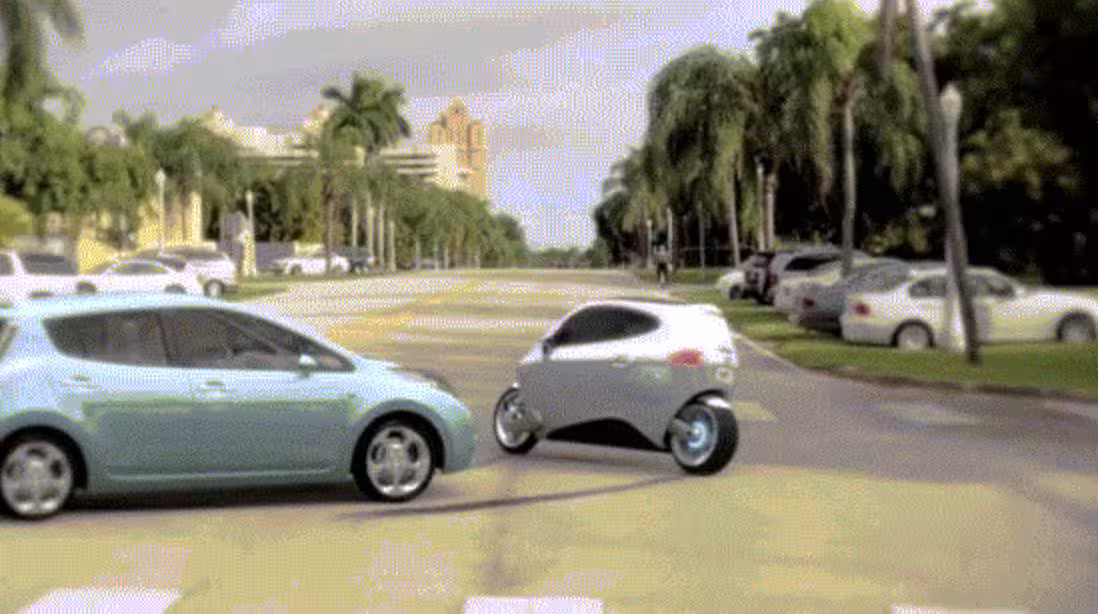 這輛車的外觀看起來很像摩托車,雖然它只有兩個輪子,