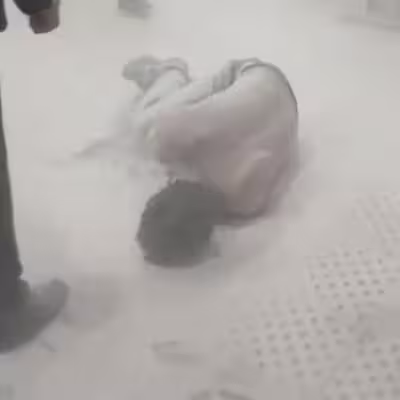 男子接著揮舞雙臂,似情緒激動,下一秒火焰從腳下猛往他身上竄,頃刻就變成火球。他慘叫著跑向大廳,撲倒在地上翻滾,現場警衛以滅火器迅速滅火,但男子身上的衣物已被燒光,全身嚴重受傷,蜷縮在地上呻吟不止。