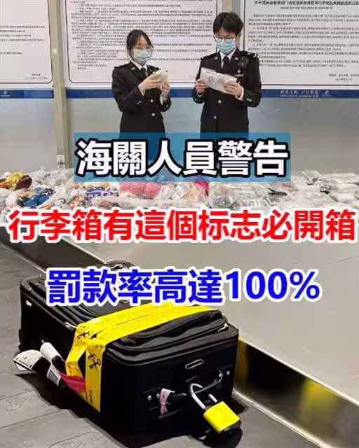 海關人員警告:行李箱有這個標誌必開箱!罰款率高達100%~