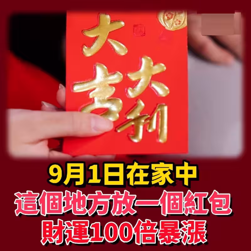 風水師偷偷透露:9月1日在家中這個地方,放一個紅包,竟能讓財運100倍暴漲,好運一路旺到年底