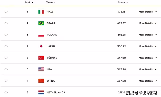 目前世錦賽八強球隊當中,只有中國女排是唯一一支提前出局的世界前八,輸球被扣除18.27分,總分337.02下降兩位,位列世界第七,後面需要贏很多場比賽才能賺回來,也讓日本隊很長一段時間坐穩亞洲第一的位置。
