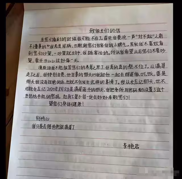 在女孩徹底失去消息後,家人們找到她刻意遺留的信件,信件內容讓人們陷入了沉思...18歲應該是對未來懷抱希望、夢想的年紀,但她卻提到對親人的感激、對事情的懊悔、對自己的自責,瞬間讓人感覺到女孩的無助,這不是一封簡單的家書,看上去更像是一封「遺書」。