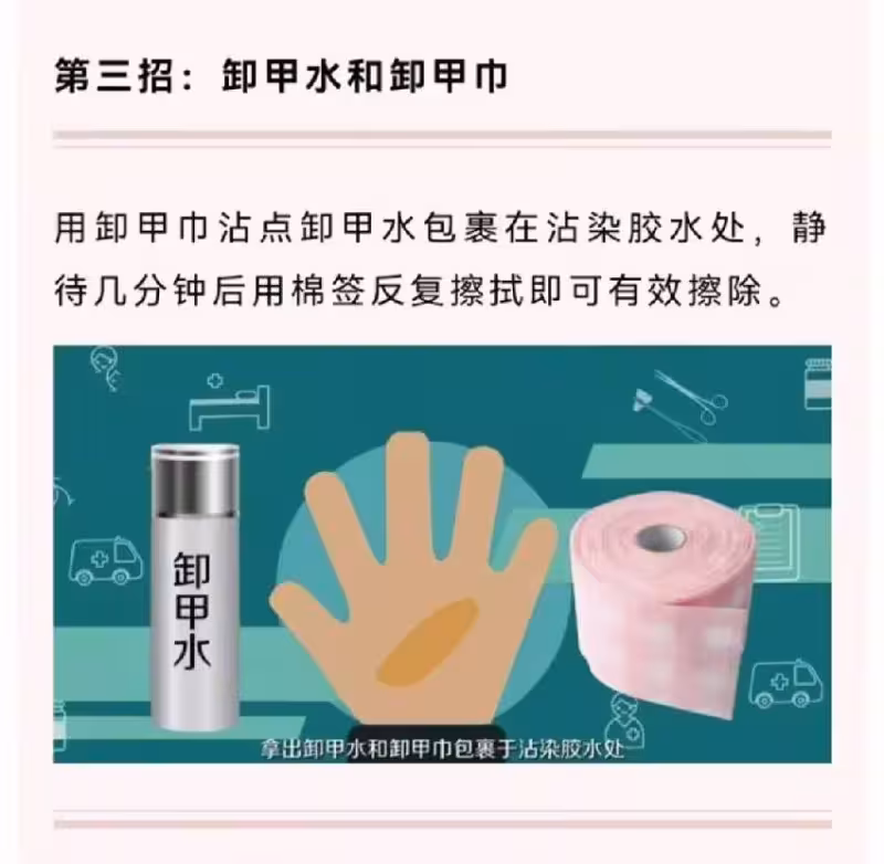 消防員來學校教急救時專門演示溫水沖洗,說油會讓強力膠膨脹,像裹層糨糊越搓越黏。