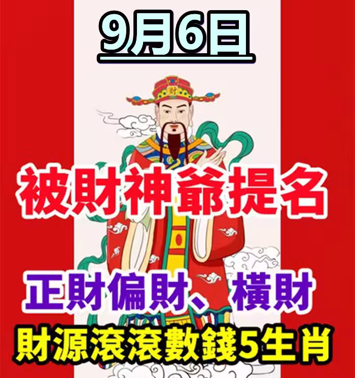9月6日被財神爺提名,正財偏財、橫財,財源滾滾數錢的5生肖!