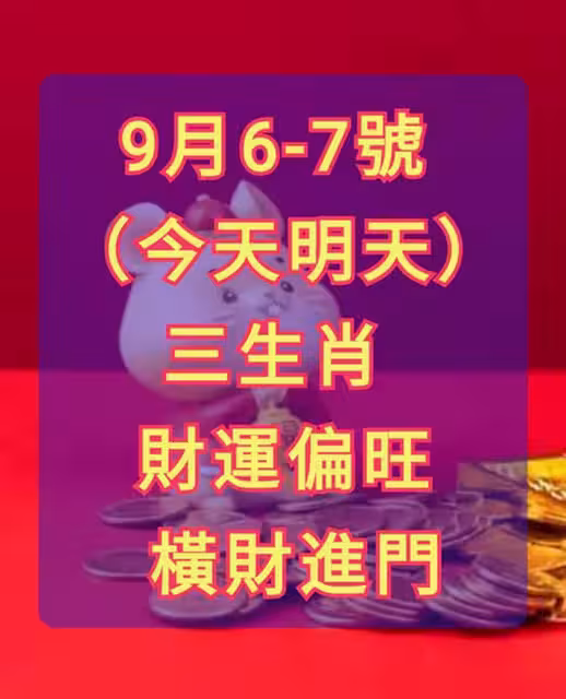 9月6-7號 (今天明天)三生肖 財運偏旺 橫財進門
