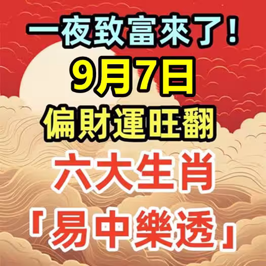 一夜致富來了!9月7日偏財運旺翻,六大生肖「易中樂透」