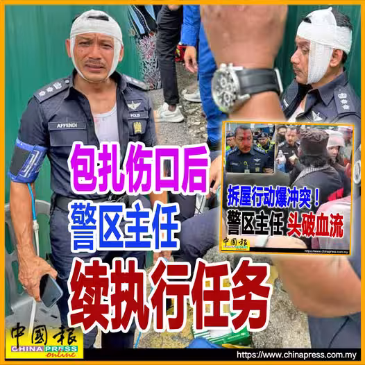早前因拆屋風波引發警民衝突,導致臉部受傷的警區主任,在現場清理傷口及進行簡單包紮後,傷勢已無大礙,繼續回歸工作!