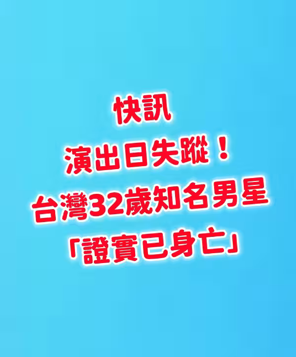 快訊/演出日失蹤 本土喜劇32歲知名男星「證實已身亡!」
