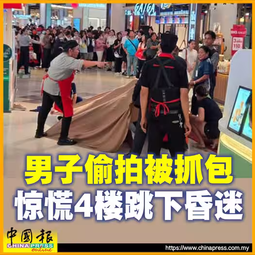 報道指,一名21歲的男子因驚慌失措,從四樓跳下,試圖逃避當場抓到他偷拍裙底照片的保安。