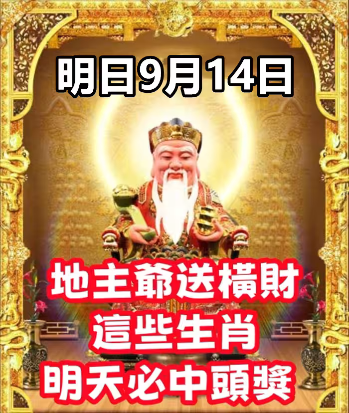 明日9月14日:地主爺送橫財,這些生肖明天必中頭獎!