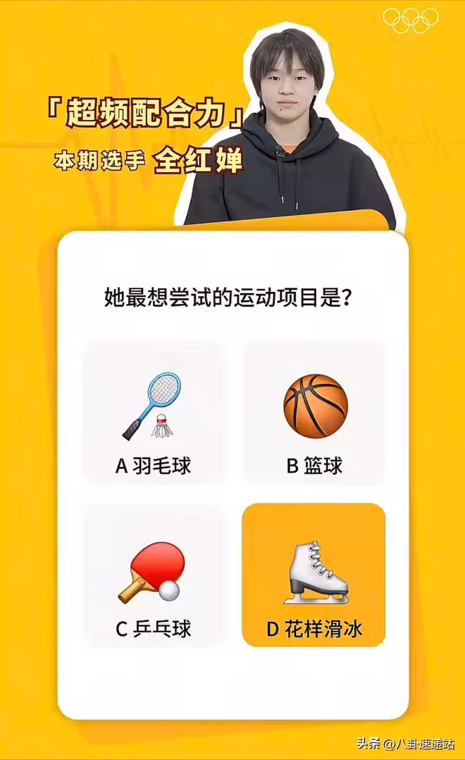 有全妹、嬋寶、小紅、小九這四個選項,這是出給粉絲們朋友們的問題,像看看大家跟全紅嬋的默契程度有多少。