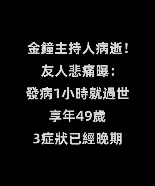 金鐘主持人病逝!友人悲痛曝:發病1小時就過世,享年49歲3症狀已經晚期!