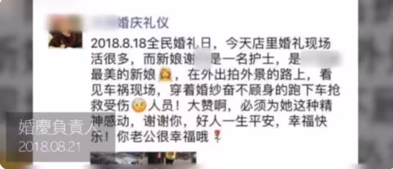 最美新娘!她見意外急跳車「跪地幫阿嬤CPR」新郎:這是我們應該做的!!