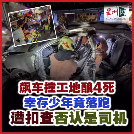 轎車飆速撞工地釀4死 倖存少年否認是司機