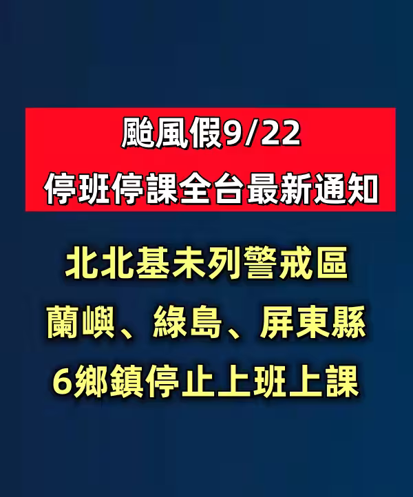 快訊/颱風假9/22停班停課全台最新通知 ,北北基未列警戒區 蘭嶼、綠島、屏東縣6鄉鎮停止上班上課